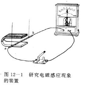 磁能生电,这种现象我们是看到了在什么条件下才能产生这种现象呢?导体要在磁场中运动。但只是运动并不够,图12-1中导体ab上下运动时并不产生电流。原来导体ab在石运动时切割磁感线,所以产生电流,上下运动时不切割磁感线,所以不产生电流。如果导体斜着运动,也切割磁感线,会不会产生电流呢?事实上的确会产生电流,那么,结论是什么呢?